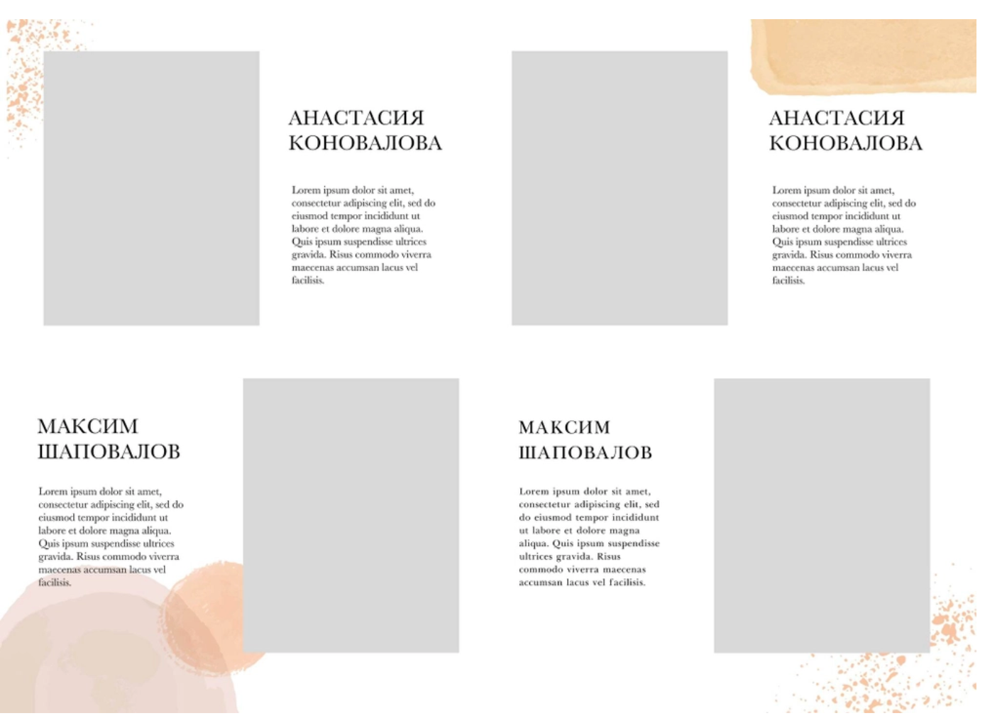 Стоимость доплаты за дополнительную съемку + дополнительный разворот в альбом 800 рублей с человека.