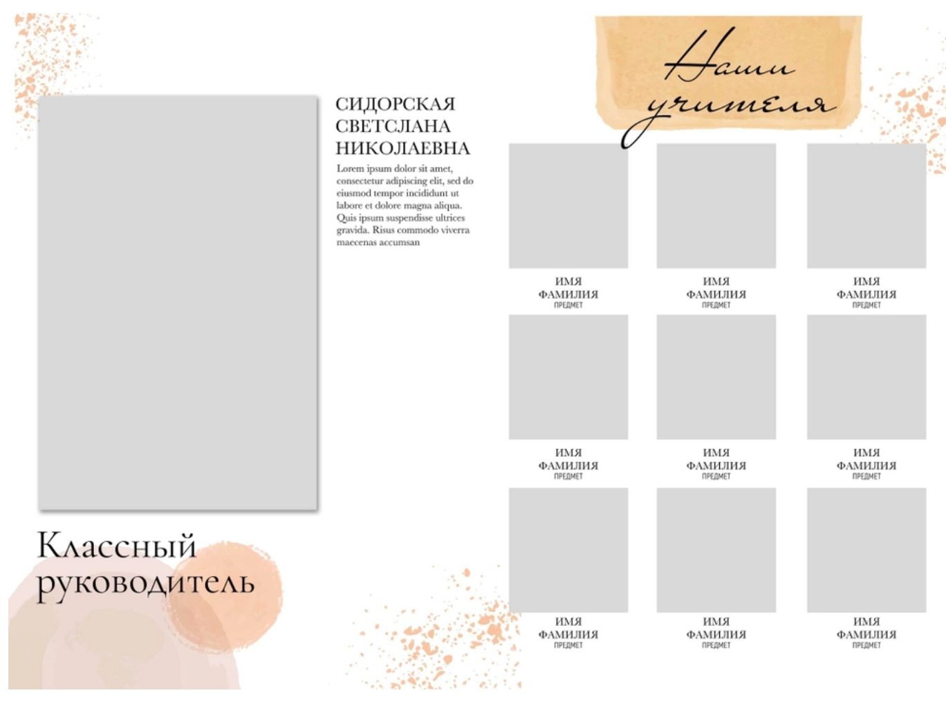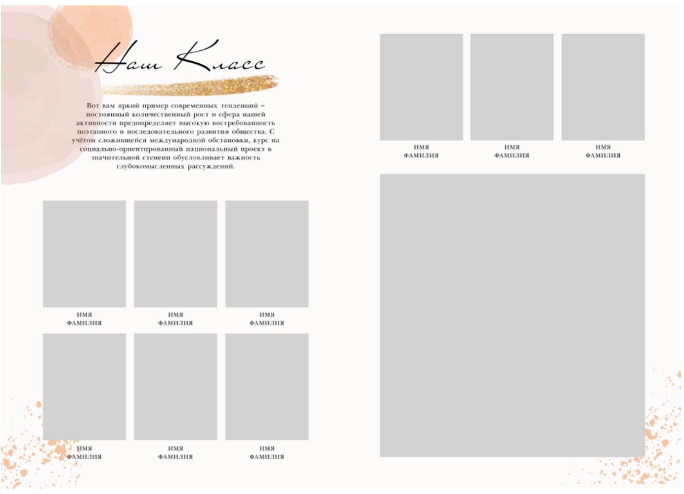 — Я уверена, что за время учебы у вас скопилось много своих фотографий, которые, Вы, возможно, так же захотите добавить в альбом. Тогда он будем максимально наполненным, например в детский альбом можно добавить фото ребенка с момента его поступления в детский садик, а в школьный — за все года обучения! В этом варианте можно к любому выбранному альбому добавить дополнительные развороты для фото из вашего архива. Стоимость разворота рассчитывается индивидуально и предоставляется по вашему запросу.